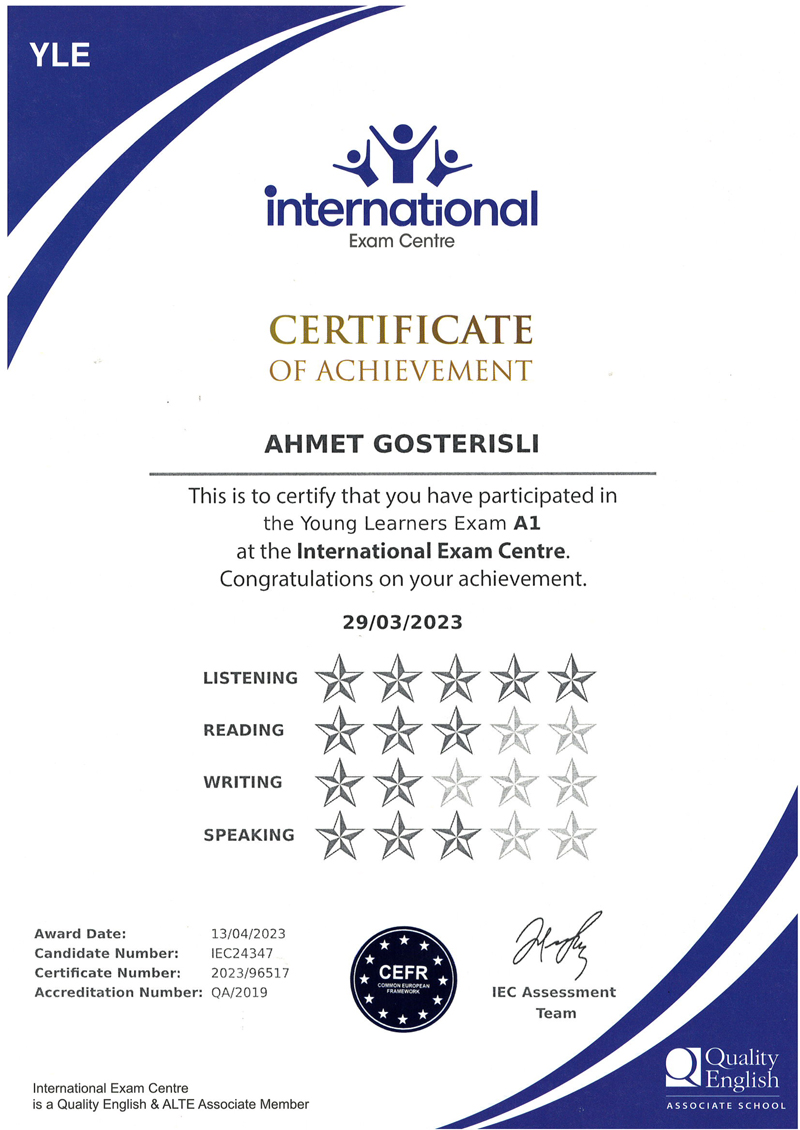 • Öğrencilere International Exam Centre tarafından verilen katılım ve gelişim sertifikası sunulur.