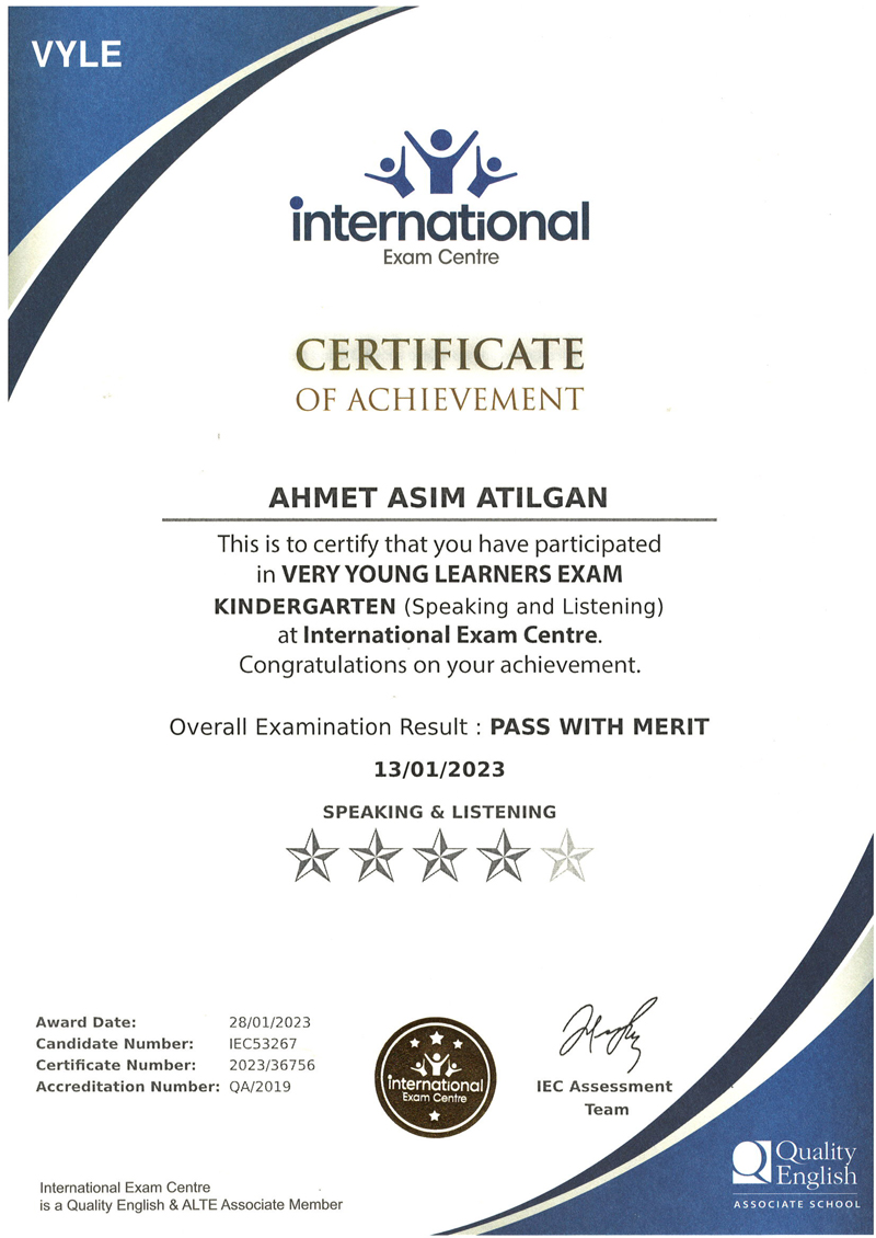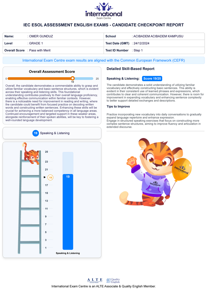 Bu çerçevede, International Exam Centre (IEC) tarafından uygulanan IEC ESOL Sınavları, öğrencilerimizin İngilizce dil yeterliliklerini uluslararası standartlarla uyumlu ve objektif kriterlerle ölçer ve gelişimlerini profesyonel bir yaklaşımla değerlendirir.
